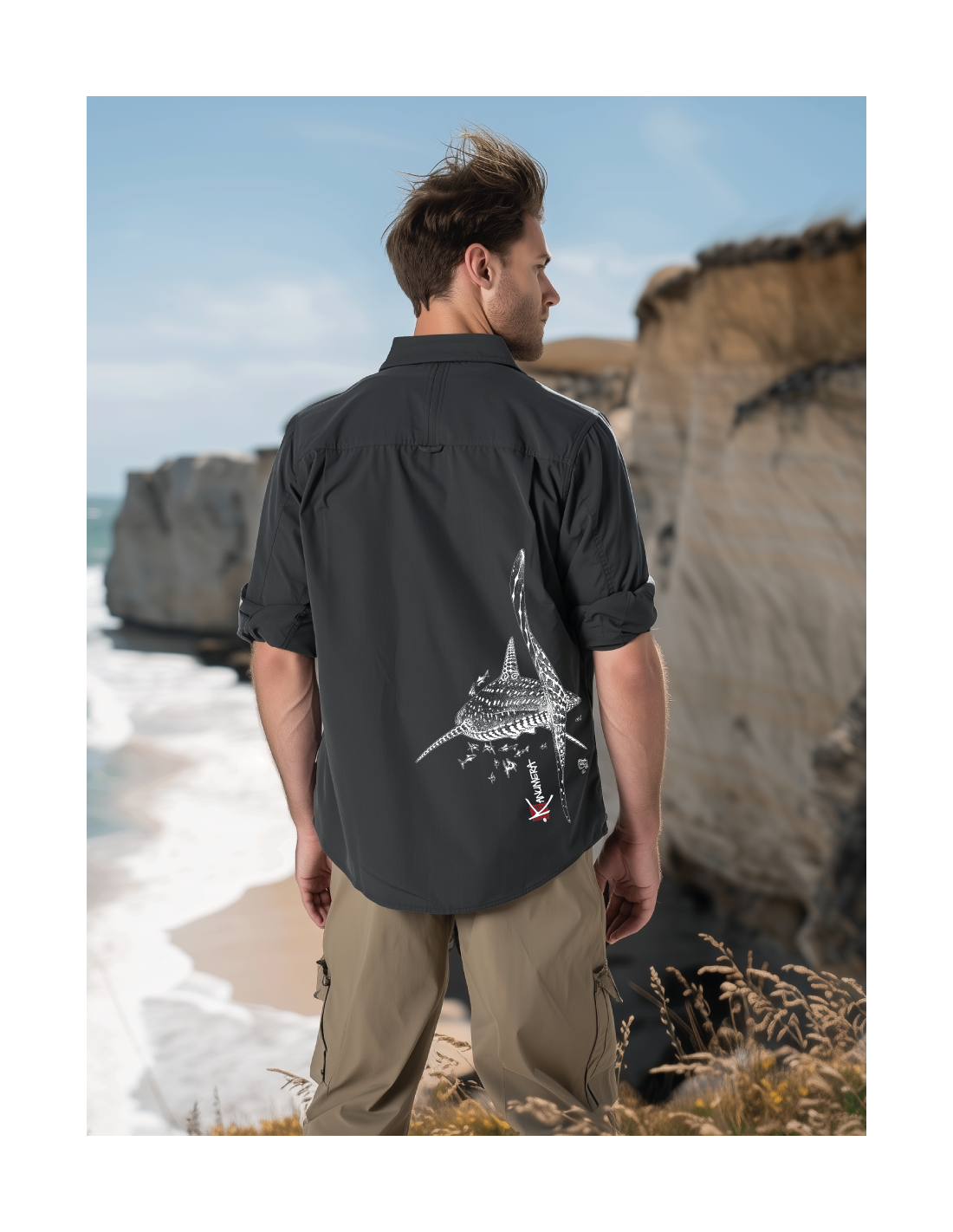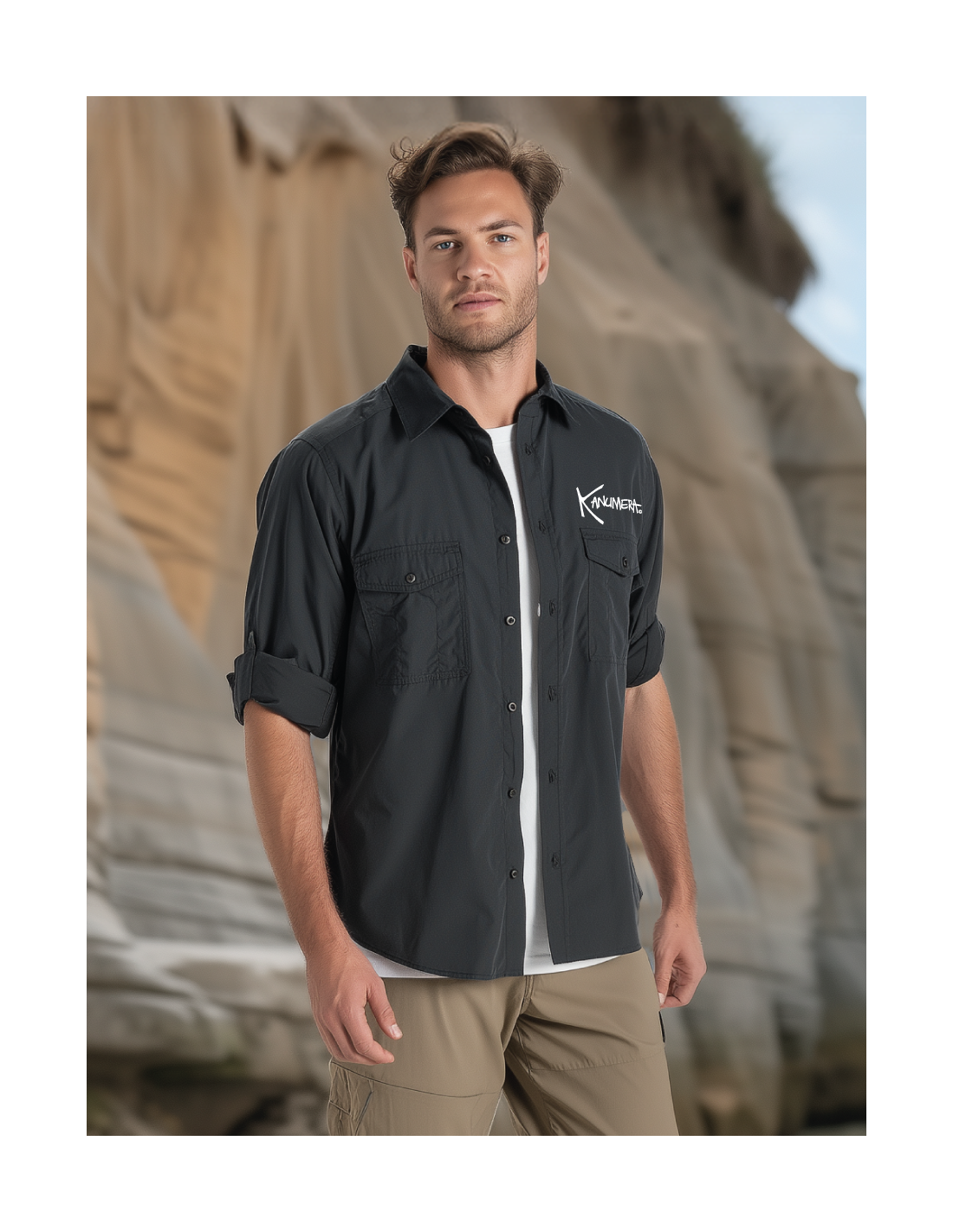 This versatile shirt combines comfort, durability, and innovative features. Made from recycled polyester (approximately 19 plastic bottles) and cotton, it delivers both performance and environmental responsibility.