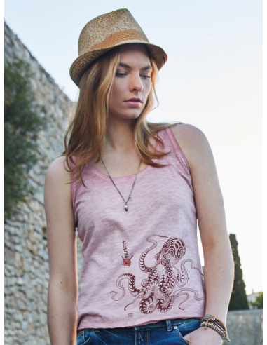 Ladies' tank top in vintage look - Outer fabric (130 g/m²): 100% cotton - Single jersey made of slub yarn and combed ring-spun organic cotton - Elaborate Spray Print technique - Two-ply roll hem - Narrow bands on neckline and armlines - Lightly waisted