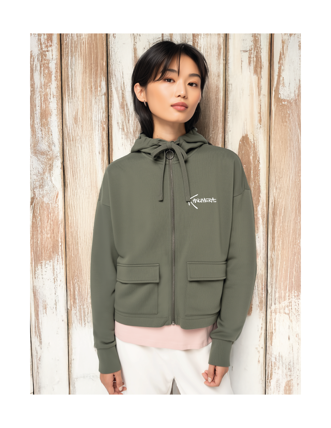 300 g/m² - 85% coton peigné biologique / 15% polyester recyclé post-consumer - Coupe ample et épaules tombantes - Molleton non gratté (French Terry) - 3 fils LST (Low Shrinkage Terry : pré-rétréci) - 1/2 lune dans le dos - Lavé aux enzymes - Zip en métal recyclé avec tirette en forme arrondie - Deux poches plaquées devant avec rabat - Capuche à pince doublée en matière principale - Cordon de serrage plat en coton biologique - Bande de propreté intérieure encolure en chevrons - Finition bas de manches en bord côte 1 x 1 - Finition bas de vêtement en simple surpiqûre - Finition intérieure du zip avec biais de propreté en jersey.
